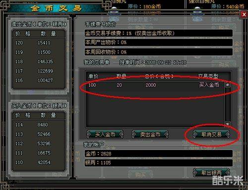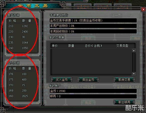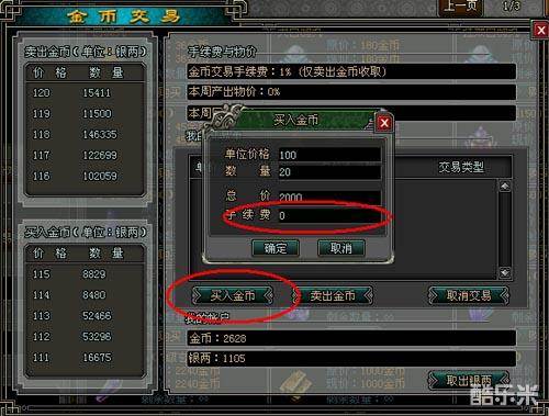 卖出金币时需要缴纳银两总价1%的手续费,在交易成功后,系统自动扣除。