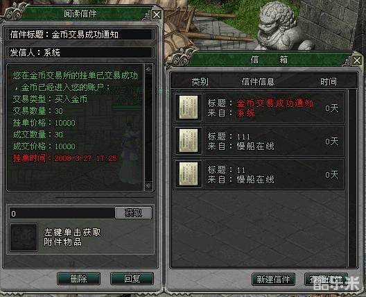 另外,你每次在金币交易所成功卖买金币后,都会收到系统发给你的确认邮件。