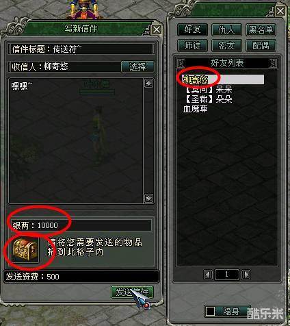 小提示:只有当对方是你的正式好友时,才可以使用飞鸽传书互相传送信件或物品哦。