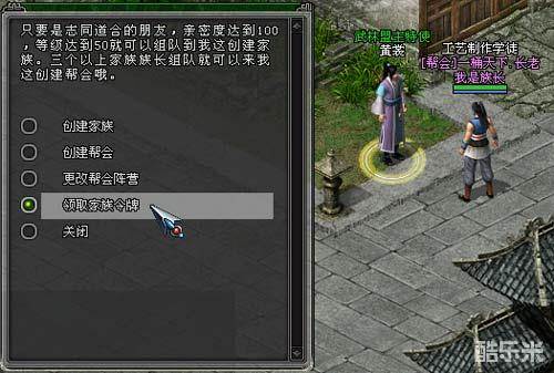 满足以上条件后,就可以组队到“武林盟主特使”处,由队长和他对话,他会告诉你建立家族的各种条件,选中“创建家族”。