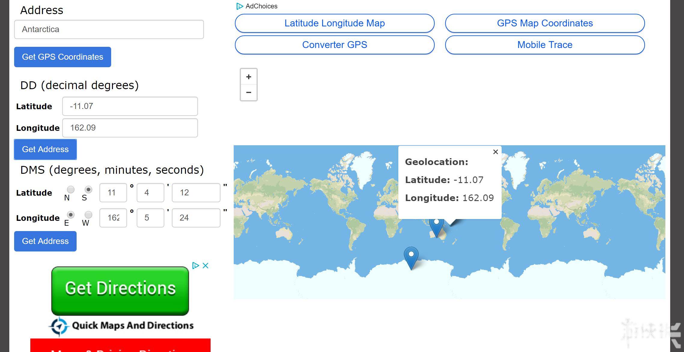 注:如果大家看不到其他玩家留下的信息,大家可以按照坐标找,我自己有个技巧:随便上网找个坐标定位网站(如图)输入这个坐标,然后随便找个地方降落,下飞机,用目镜能看自己现在的坐标,在坐标定位网站上再输入自己现在的坐标,就能看到自己相对目标的位置,比如目标在自己东北部,那就上飞机,往东北方飞,飞到差不多距离的时候,就能看到其他玩家留下的信息了,冲着信息飞就能找到啦。