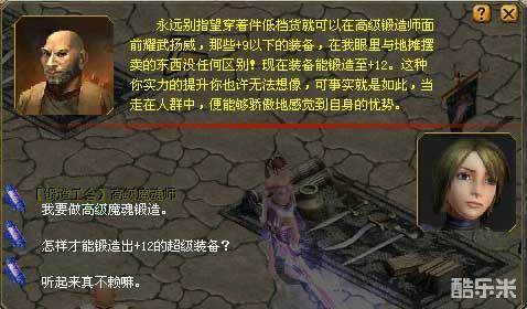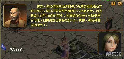 高级锻造针对的是85级以上魔魂等级为9的武器装备。以魔魂晶石为材料,在高级魔魂师(雷鸣交易行 348,504)高超技艺帮助下你的武器装备就能一步步从+9迈向+12!