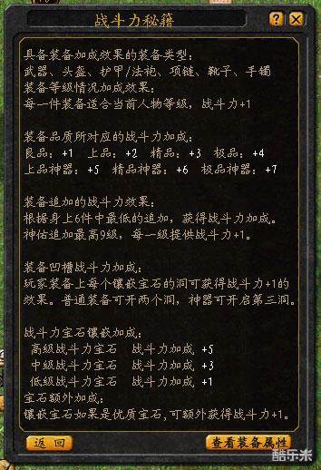 1)装备品质战斗力(根据每件装备的品质单独计算装备品质战斗力):