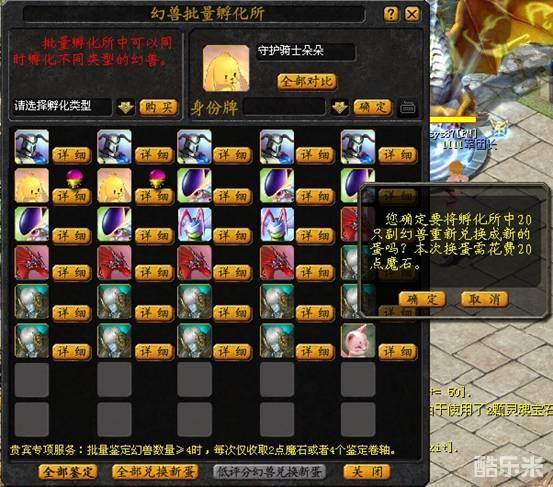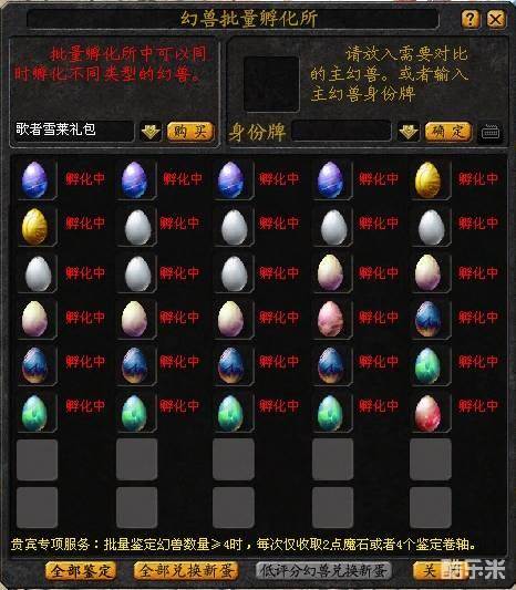 玩家花费一定的魔石,可以通过界面的“全部兑换新蛋”按钮,将界面中已孵化的副幻兽全都换成新幻兽蛋。