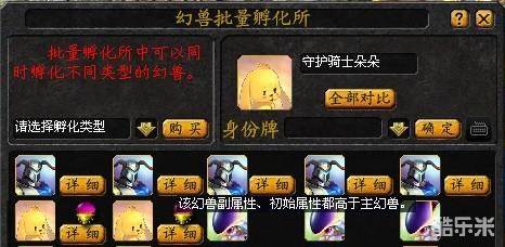 温馨提示:只有同种类型的幻兽才可以进行属性对比,若副幻兽之前已经在孵化所进行过鉴定或属性比对,那么再次与其他主幻兽比对时,不再收取费用。