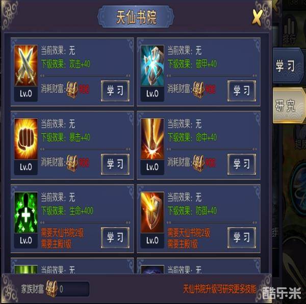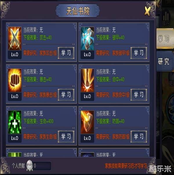 加入一下好的家族也是很重要的,学习家族技能需要家族个人贡献。