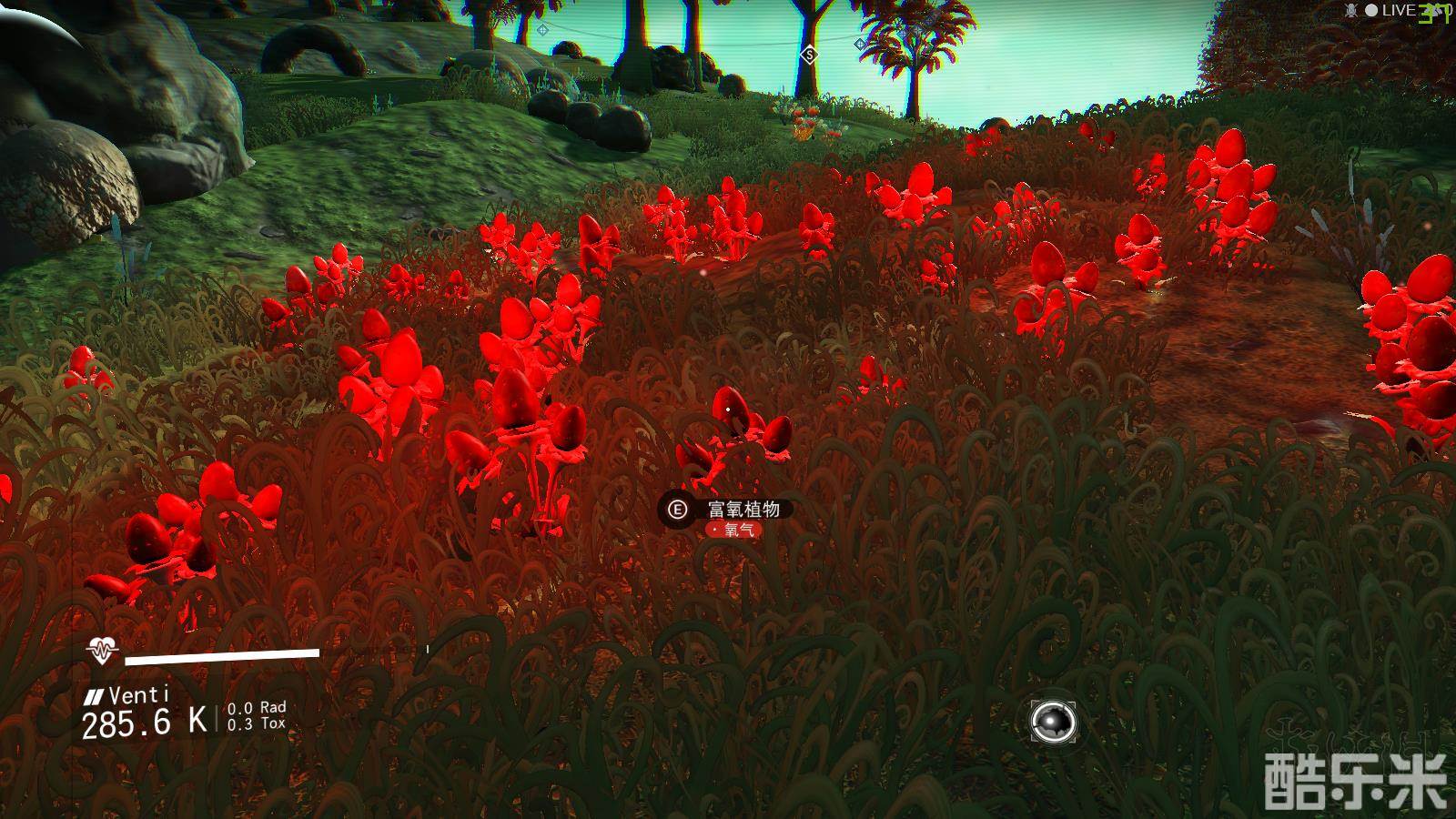 但是如果你开着飞船在星球低面多走走,你就会发现有一大群富氧植物扎堆,吧它们全部采集完之后可以得到差不多1000单位的氧气!!!