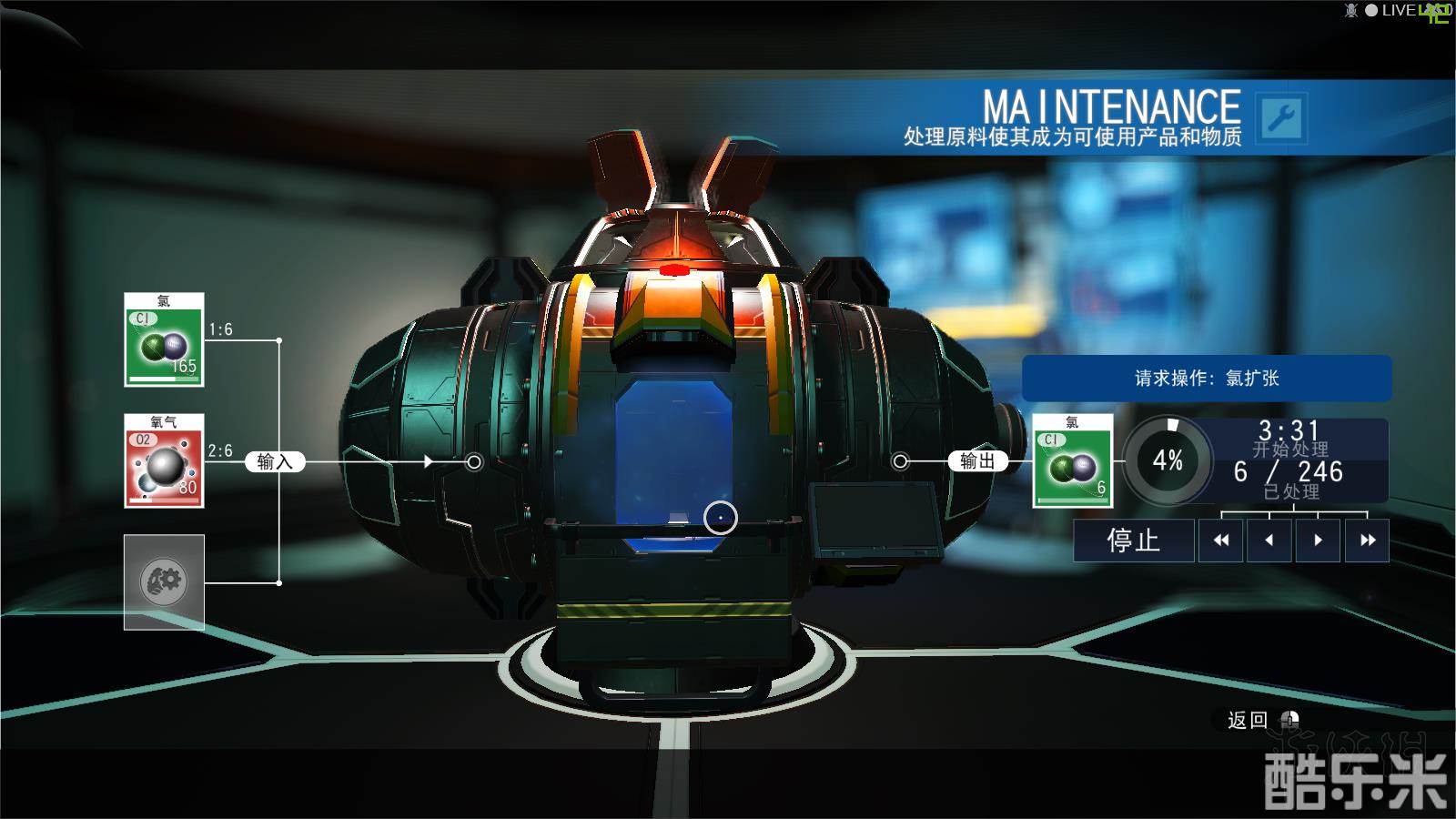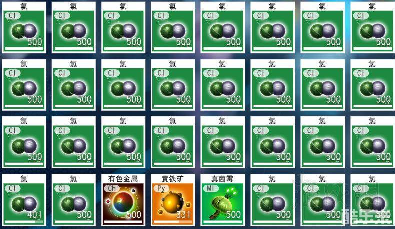使用这个最重要的公式 氯+氧气=氯1:2:6 通过这个过程公式不断地复制氯,等氯的量达到五六千之后(看起来很多其实多采集一些氧气,然后初始的少量氯多循环几次很快就能达到了五千单位以上的数量了)以后氧气就用来进行氯循环了。