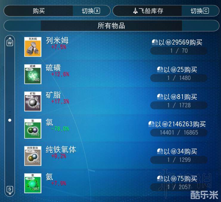 2.各位初始的飞船和背包容量可能都不太多,而且东西杂七杂八的太多,我希望大家勒紧裤腰带给腾出至少五六千单位的氯,放在飞船上就是10到12格,哪怕赚了第一桶金都能有钱拓展格子或者直接买新飞船了。