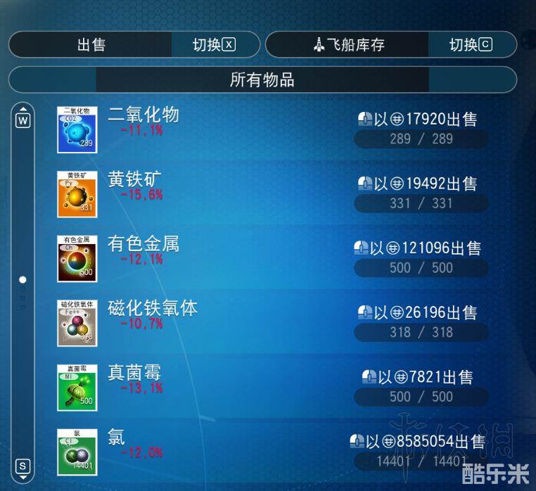 (2)把五六千单位的氯装到飞船上然后一次性全部卖掉,一定要一次性全部卖掉,建议直接把货船停在空间站门口。
