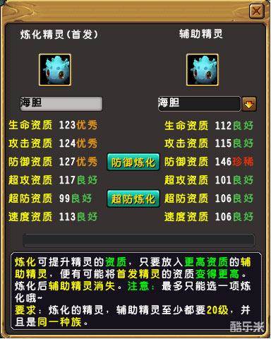注意:炼化成功后辅助精灵将会消失,不要放错了两只精灵的位置哦 ^_^。