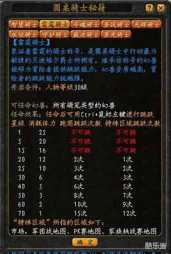 任命“雷霆骑士”后,能马上获得1点战斗力提升;同时根据幻兽星级可获得相应的跳跃次数,还可以在跑商和特殊区域进行跳跃。(按ctrl+鼠标左键可进行跳跃)
