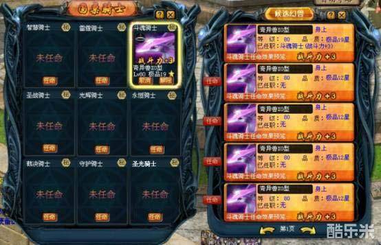 点击“圆桌骑士”界面的“任命”按钮,屏幕右侧出现“斗魂骑士”的候选幻兽页面,你根据幻兽任命的效果选择你想到任命的幻兽。