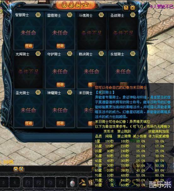 当你的人物为异能者,等级达到或者超过20级时,就可以任命末日骑士(只有异界精灵瑞拉才能任命为末日骑士):