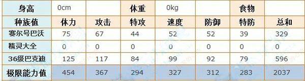 赛尔号巴沃/巴克迪种族值: