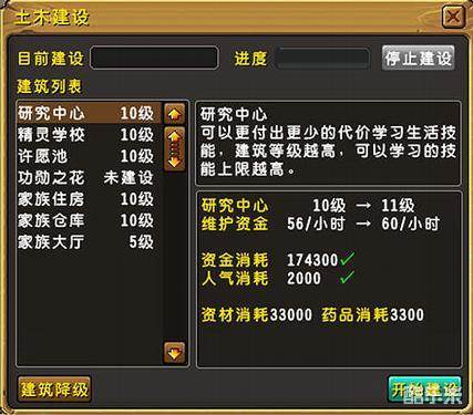 建设需要消耗一些资源:资材、药品、资金、人气消耗等。(这些资源可以通过家族成员捐献,或者完成家族任务获得)