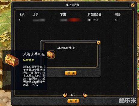 可开启战功排行榜界面,点击个人的战功信息,即可进行快速领取,如下图所示: