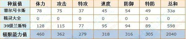 赛尔号卡斯_赛尔号兰斯特种族值: