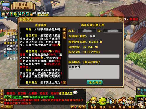 当玩家等级达到30级就可以找商会管理人(新叶城 114.110)申请开店了,这个过程中童鞋们需要设置好商店名称、简介等信息完成工商注册,每个角色最多能开设一间商店,开店后,玩家无需保持在线,商店将自动运营。