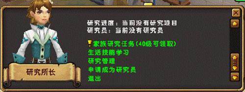 学习制造技能将消耗一定的人物经验及金币,而在家族中学习制造技能,能够打到很低的折扣,为你省下大量的升级消耗。还犹豫什么呢?赶快加入家族吧!在家族内的研究所长处可以升级制造技能。