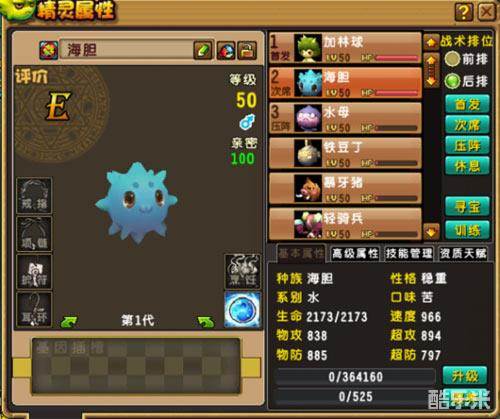 给海胆装备蓝色魔珠,海胆的第四个四维色就变成了蓝色。如下图,海胆有了双蓝色的四维色,速度属性加成叠加,海胆增加的速度属性提升。