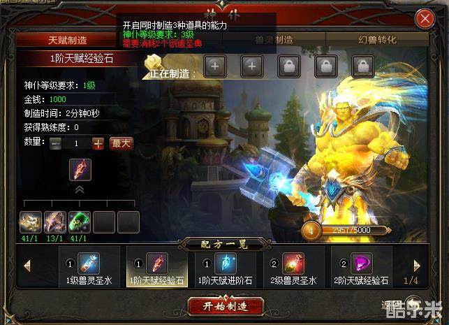 等级越高,可开启更多制造队列,同时制造多个道具。