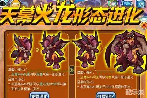 然后再通过和伯恩尼的对话选择第二个选项“我要进化”。可以看到,至尊NONO玩家可以免费进化成最高级形态,其它玩家只能通过消费2米币进化到第二形态,无法进化最终形态。