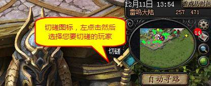 特别提醒:当您在切磋时,还是有可能会受到其他玩家和怪物的攻击的,千万不可大意呀!