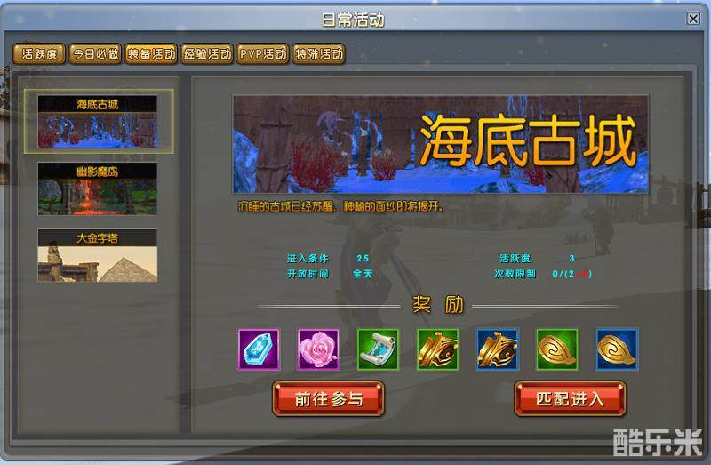 3.日常活动的类型分为装备活动,经验活动,PVP活动和特殊活动。