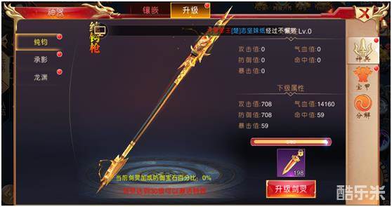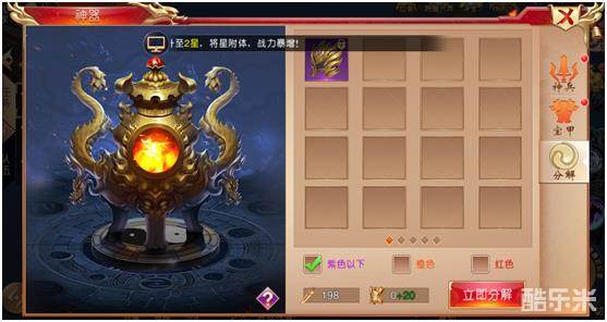 3.多余的神兵材料或者宝甲材料,可通过分解功能进行分解,获得用于升级剑灵或器灵的材料(住:分解所获得材料的数 量是随机的)