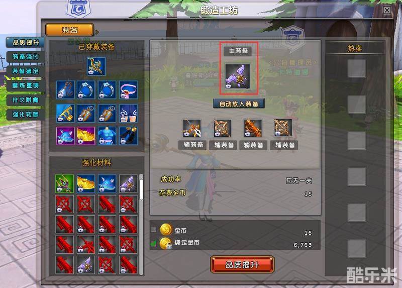 6.无论提升品质是否成功,均保留主装备的强化等级。