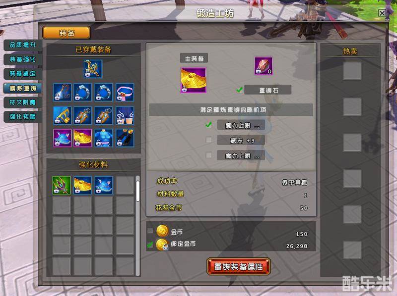 精炼重铸可以在装备上洗炼装备的附加属性,提升属性值。
