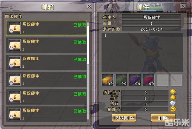 1.邮件是系统发送给海米们一些重要信息的方式,例如都会通过邮件的方式通知给各位海米;