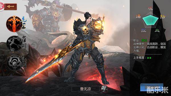 选择你想要玩的职业,可以在各职业之间切换选择。这是暴力的战士职业。