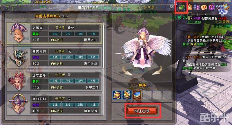 2.在地图下方的世界BOSS界面,可以查看当前BOSS的刷新情况;