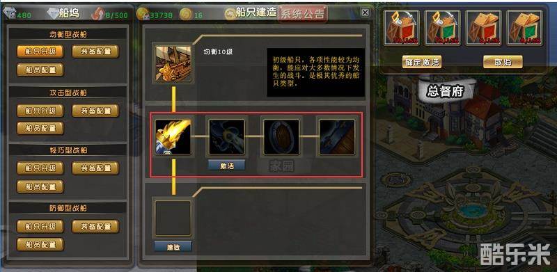 2.船只升级需要激活船只组件,船只组件激活需要对应的船只组件材料,点击“确定激活”可以激活船只组件。