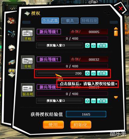 4、可通过直接输入数字的方式分配已获得的“授权经验值”;