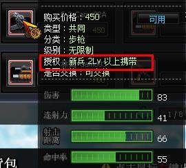 1、在游戏中,玩家使用武器道具时,需达到武器要求的授权等级,才可成功使用该武器道具;