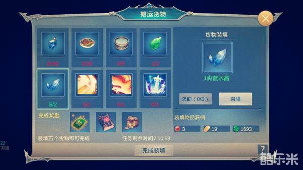 领取任务后可在任务栏里打开装填界面。装填的货物主要为:宝石,食品,药品和部分装备。