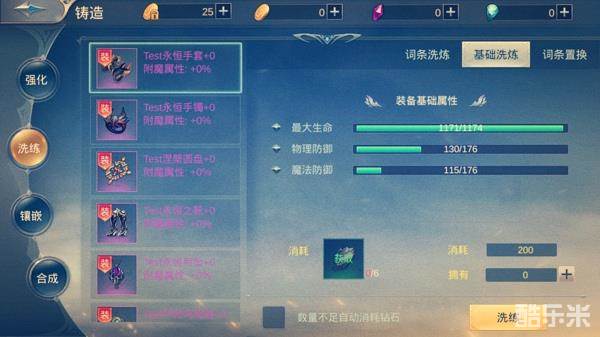 1、消耗仙泪绿金和金币,可以重置装备基础属性的数值。
