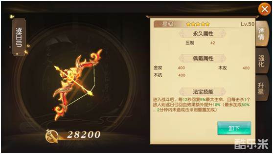 附带吸血效果的法宝,能够一定程度上提高魍魉的续航,特别是在炎黄战场这类组队PVP的模式下,逐日弓的回血效果更是能够叠加。