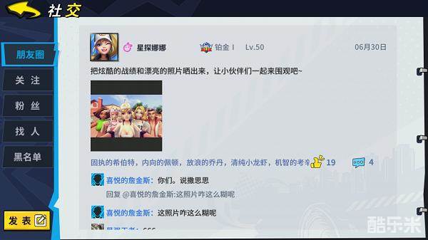 《街球艺术》的社交系统与一般游戏不同,他不仅仅可以用来交友开黑,还可以像微博、推特那样进行发文、关注、点赞体验当微博大V的感觉,除此之外还具备直播功能,可以发弹幕送礼物与其它玩家进行互动。