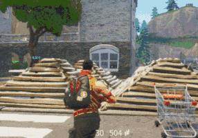2.先去找一颗茂盛的大树,利用搭建斜梯上去。上树后再把斜坡打掉,就可以在大树上偷偷的观察敌人啦,无论是偷袭还是躲避都很好用。这不是胆小,这是战略。