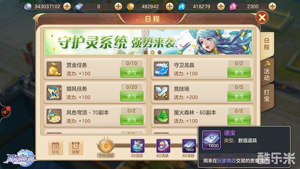 有付出就一定会有收获,唯有风色勇士的勇气不可辜负。在超燃萌幻进击的《风色世界》中,每完成一个日常任务的冒险,都将会有对应数值的活跃度进行见证。当活跃度累计到80、100以及120时将依次发放1000、1500、2000的通宝对大家的勇气进行嘉奖!