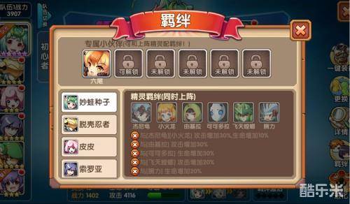 没有一只队伍是靠一个精灵来完成任务的,在《口袋联盟》中精灵间的配合也尤其重要,因此游戏加入了羁绊设定。与带有羁绊关系的1个或多个其他精灵同时上阵即可激活,羁绊将会提升精灵生命以及攻击的百分比,属性得到加成。