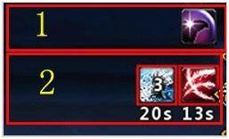 区域显示为角色获得的增益状态区域显示为角色获得的伤害状态