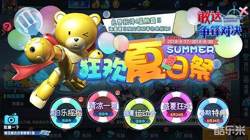 2018年的夏天热力依旧啊,《敢达争锋对决》在推出本月新机「异端红色机改」「力天使」「卡碧尼」等连续的重磅后,就在暑期的8月17日直至月终的最后半个月,展开了最新期限活动「狂欢夏日祭」!其中更是奉上了极为丰富的五大活动玩法,以及钢普拉中的人气之王「熊霸3」!