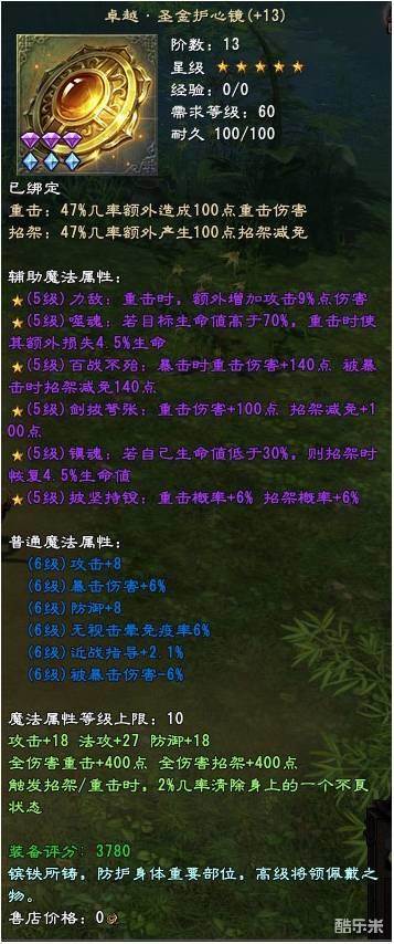 ③阶数越高,该护心镜的魔法属性等级上限也越高。