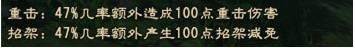 初始属性说明:每个护心镜必定会有重击和招架两个属性,其中重击是指造成伤害时有几率造成额外伤害,而招架是指受到伤害时有几率减免伤害,所有护心镜的初始属性都一样。