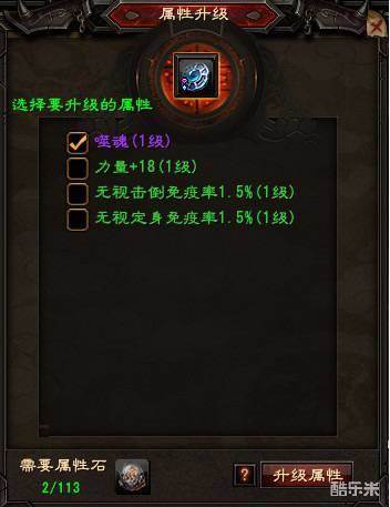 ①玩家可自行选择想要升级的魔法属性,其中辅助属性升级需要辅助属性石,普通属性升级需要普通属性石。